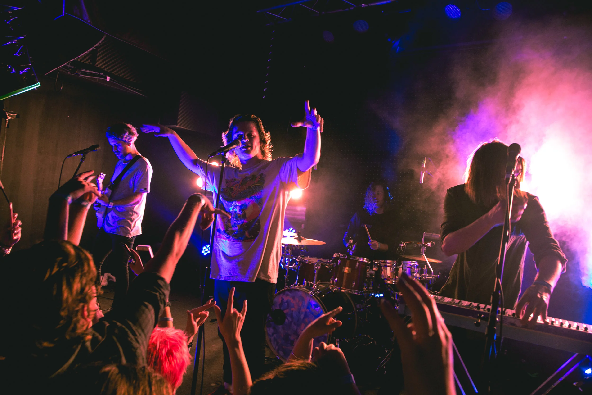All eyes were on Crooked Colours as they begin their second last song of the night. ‘All Eyes’ is a impressive track that was brought to life by the band members. Phillip's superb vocals, Liam's mellow drum beats and Leon's aesthetic synths created a masterpiece. All good things must come to an end and to finish a brilliant set, Crooked Colours performed, ‘Flow.’ This track flowed nicely into an incredible ending, but the fans wanted more. "One more song," the crowd chanted in unison. The atmosphere of the room grew heavy with expectation.